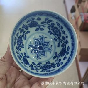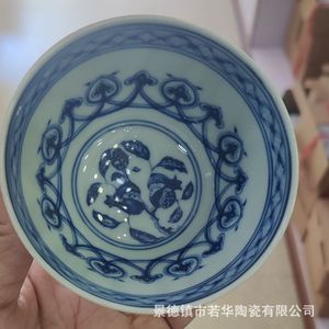 景德镇陶瓷青花菊瓣鸡心杯功夫茶具品茗杯釉下彩主人杯品茗杯批发