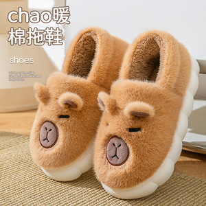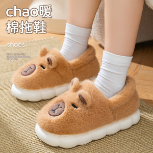 新款男士情侣棉鞋女秋冬季家居室内厚底防滑保暖毛毛月子棉拖鞋男