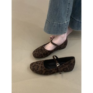 小众豹纹单鞋春秋季新款韩版东大门复古方头百搭一字扣带软皮豹纹