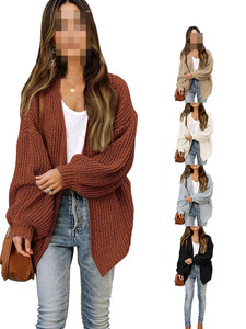 欧美速卖通亚马逊EBAY宽松复古毛衣外套女中长款针织开衫外穿新款
