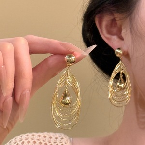 预售-金色多层圈圈水滴耳环