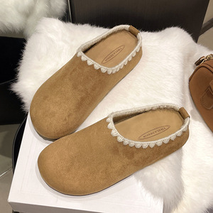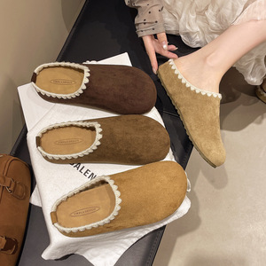 包头拖鞋女外穿2025年秋季新款复古花边懒人厚底内增高勃肯半拖鞋
