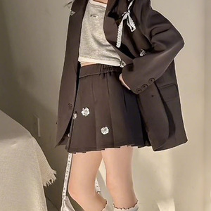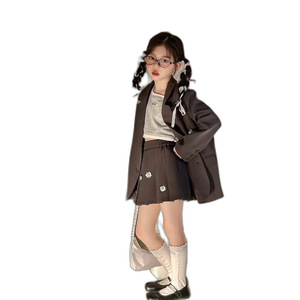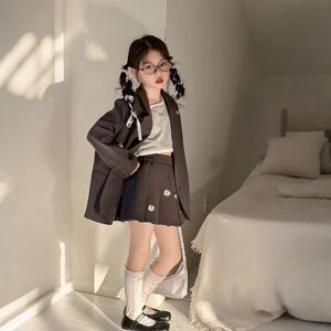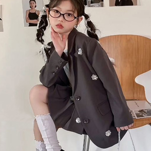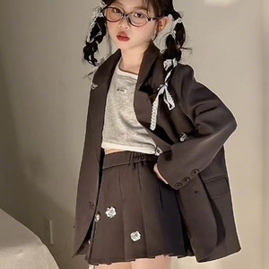 女童套装儿童外套半身裙春秋季2025新款大童时髦好看西服两件套薄