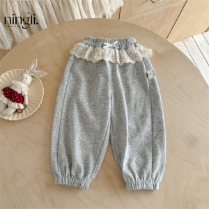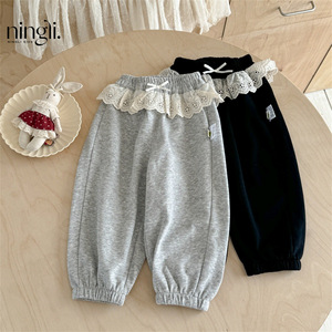 柠里女童裤子春秋款新款洋气宝宝休闲束脚裤童装秋装儿童卫裤秋季