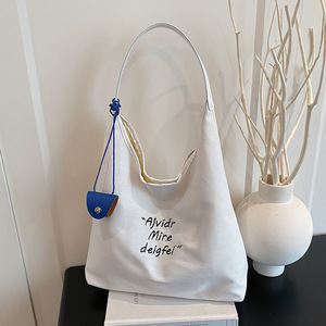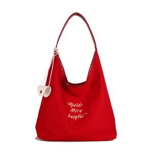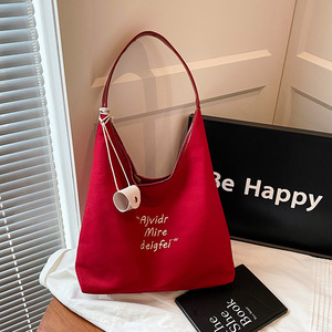 超火红色大容量帆布包包女2025新款休闲单肩腋下包百搭通勤托特包
