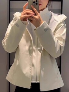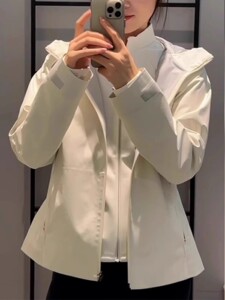 白色连帽冲锋衣外套女装秋季2025新款今年流行爆款高级感短款上衣