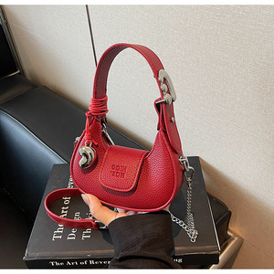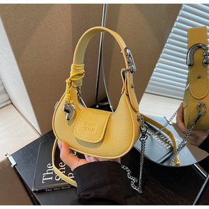 时尚小众手拎月牙包女包2025新款荔枝纹洋气链条饺子包单肩斜挎包
