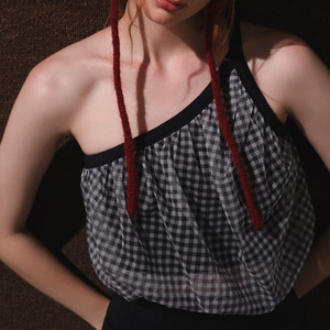 2025新款网纱单肩裸感瑜伽背心运动健身内衣,女士时尚运动两件套
