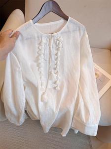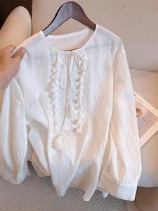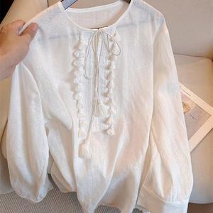 老钱风流苏白色衬衫长袖女2025早夏季新款气质小众设计感上衣