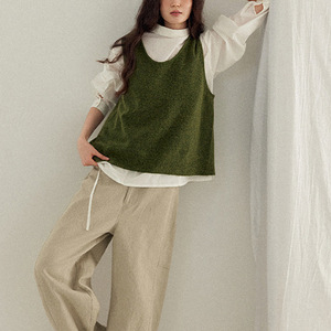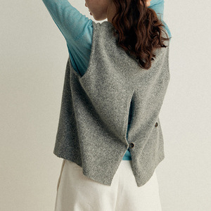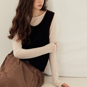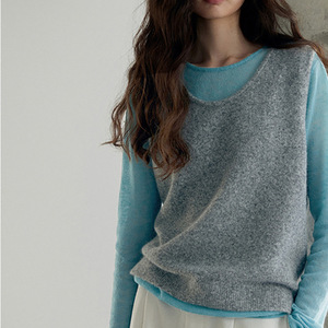 羊毛+兔毛U领可调节后开衩两穿针织衫马甲