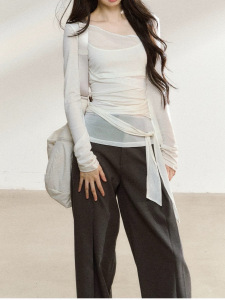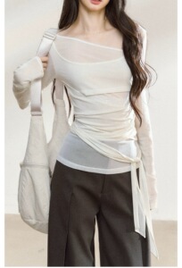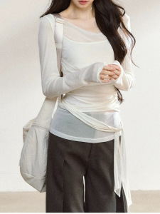 7Shiftin 原创设计秋季新款不规则长袖防晒罩衫女宽松显瘦T恤上衣