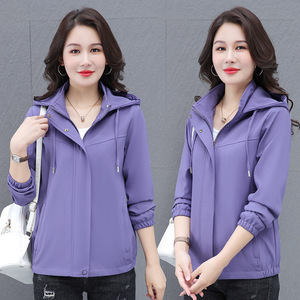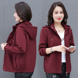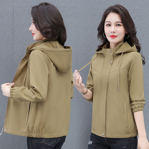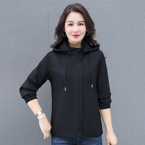 简约纯色可拆缷连帽开衫拉链夹克外套女春秋季中年妈妈装百搭休闲