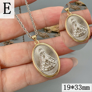 跨境新款复古瓜达卢佩十字架项链女男通用双面吊坠不锈钢链子饰品