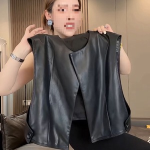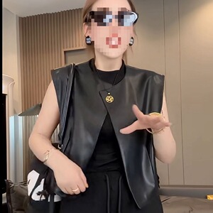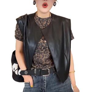 2025秋季新款时尚PU皮马甲女短款宽松无袖背心坎肩马夹外套上衣