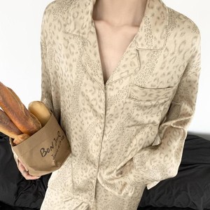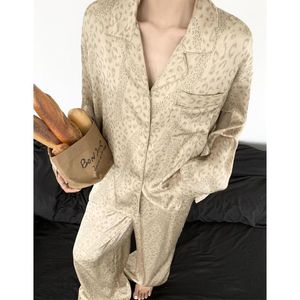 ins风高级感轻奢豹纹女士睡衣女春秋新款长袖长裤家居服套装外穿