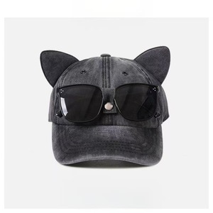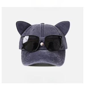 新款耳朵飞行员墨镜鸭舌帽夏秋百搭立体多巴胺棒球帽大头网红帽子