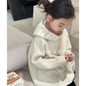 白色帽子夹棉连帽毛衣