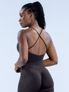 亚马逊高弹全消光锦纶莱卡露肚脐暗缝吊带大美背无缝健身吊带背心