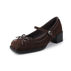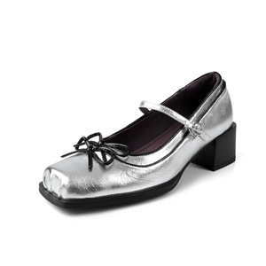 南法少女~蝴蝶结牛皮玛丽珍鞋2025秋季粗中跟方头真皮一字扣单鞋