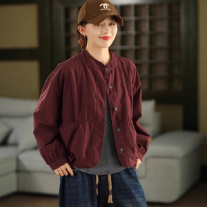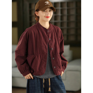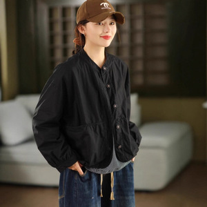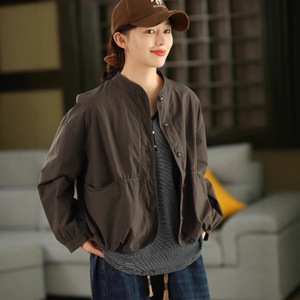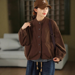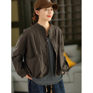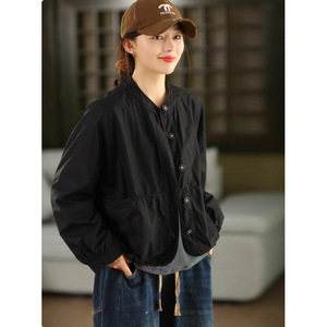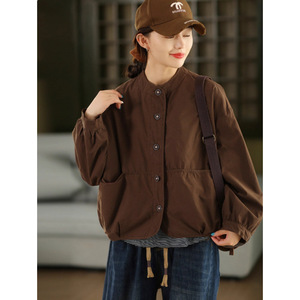 2025秋复古高密棉短款外套女内里格纹开衫外搭单排扣开衫上衣秋