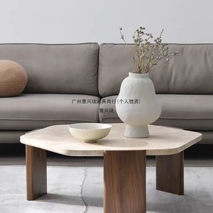 侘寂风洞茶几洞石家用客厅小户型实木简约大理石网红异形茶台矮桌