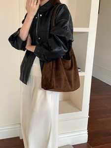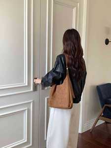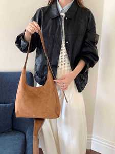 多果女包 复古磨毛绒面单肩包女2025秋冬通勤日常百搭斜挎托特包
