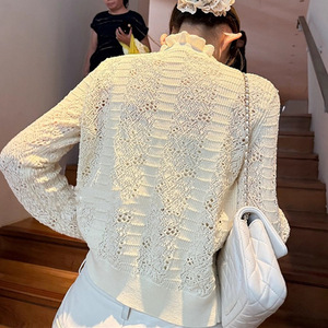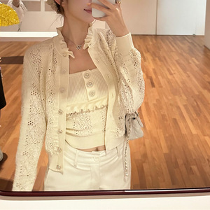 「Fluffy甜奶芙」花边镂空针织开衫+背心套装女早秋