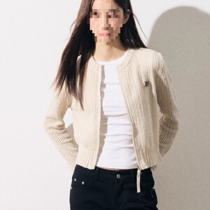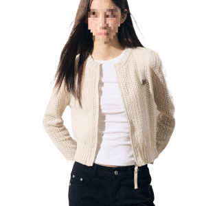 韩版慵懒风软糯短款针织衫2025春季新款拉链网眼罩衫开衫毛衣外套