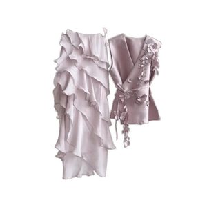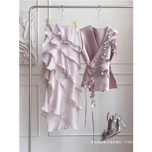 别致套装女夏季感立体花朵背心气质荷叶边裙子两件套
