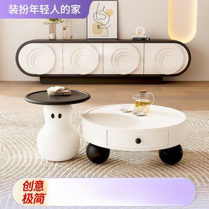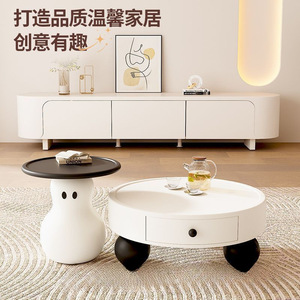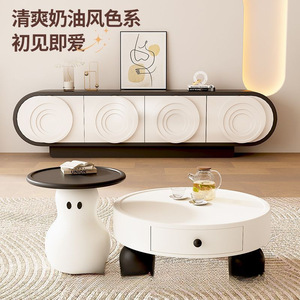 新款奶油风雪人茶几电视柜组合现代简约创意家用小户型客厅带抽屉