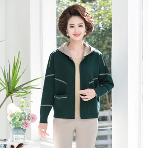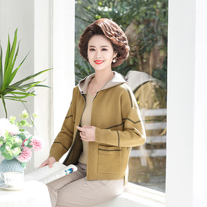 中年妈妈秋装针织外套2025秋冬新款夹克中老年女装连帽洋气上衣服