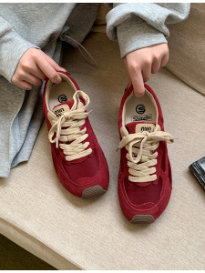 首谷早秋厚底红色德训鞋女2025新款超火网面磨砂皮休闲百搭阿甘鞋