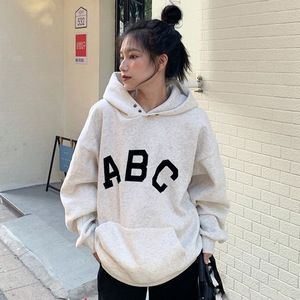 灰色ABC卫衣女加绒加厚秋冬新款韩版宽松百搭上衣帽衫学生外套潮