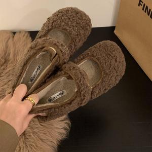 happyfeeling平底白色羊卷毛毛鞋女鞋子外穿2025新款百搭秋冬季魔