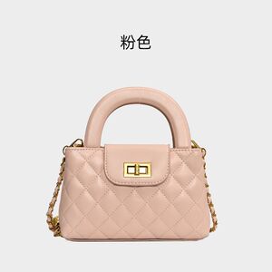 包包女款斜挎包2025新款手提包包轻奢小众高级感菱格法式粉色