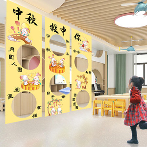 中秋节氛围布置场景装饰幼儿园游戏投沙包挂布活动道具条幅背景墙