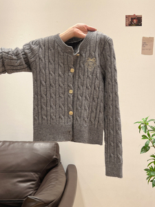 小香风麻花长袖针织开衫外套灰色女2025新款秋装洋气别致修身上衣
