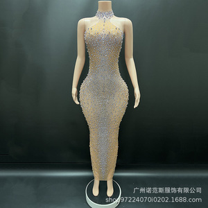 感珠光水钻bingbing度假风连衣裙生日高端礼服公司年会晚礼服