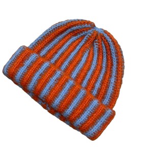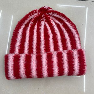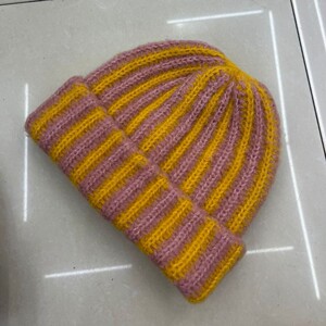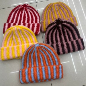 批发韩国2025秋冬新款韩版加厚双层条纹毛线帽显脸小冷帽针织帽子
