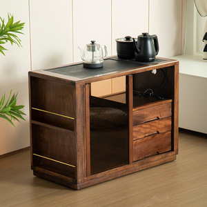 实木大茶柜移动茶桌茶台家用茶具收纳柜乌金石茶盘烧水壶一体茶几