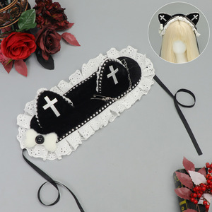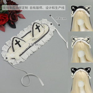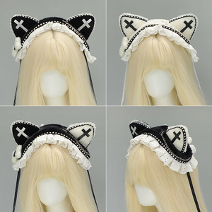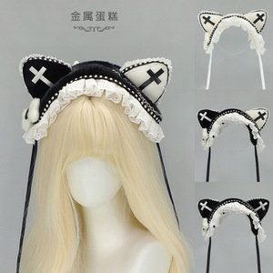 暗黑哥特风铆钉猫耳发带金属十字架猫娘发饰亚文化朋克猫耳头饰