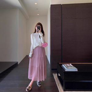 GF823飘逸浪漫 仙美网纱裙高腰显瘦中长款半身裙子女秋冬新款