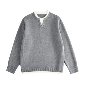 2025年秋季宽松圆领套头男式针织衫加厚可机洗青少年运动风毛线外