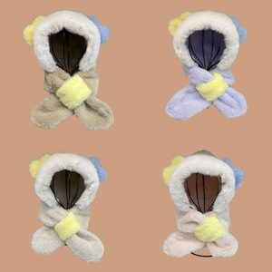 儿童帽子围巾一体护脖帽秋冬保暖女童男童可爱加厚毛绒防风套头帽