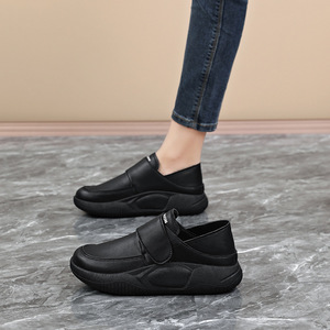 大码女鞋久站不累脚2025秋季全黑色厨房上班工作鞋防滑皮面休闲鞋