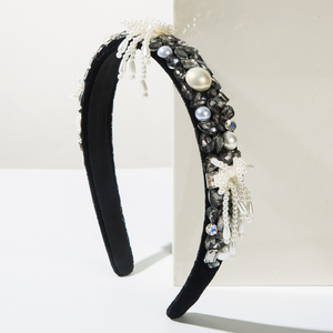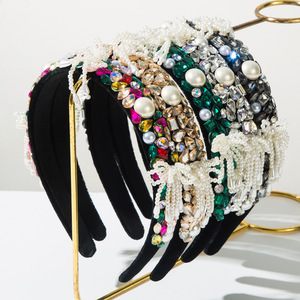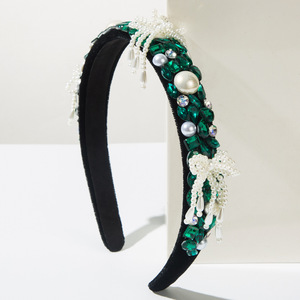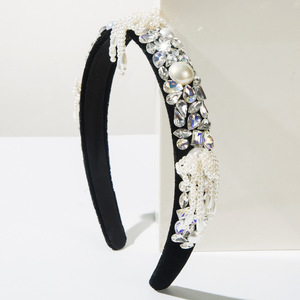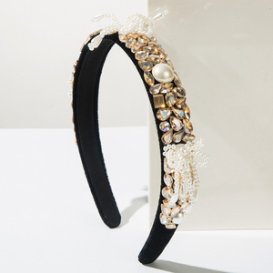 欧美巴洛克复古气质镶满钻发箍精致仿珍珠串珠蝴蝶结华丽舞会发饰
