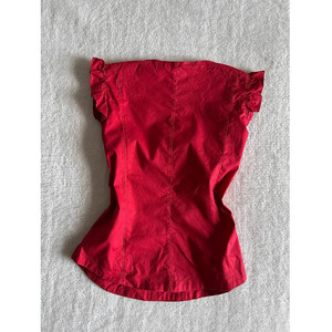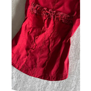 外贸单品质,复古气质高级感飞飞袖红色上衣女夏法式绝美漂亮小衫