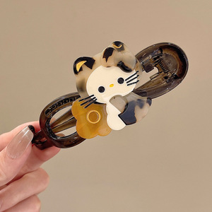 复古猫咪一字抓夹女2025新款发夹后脑勺盘发扭扭夹大号气质鸭嘴夹