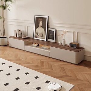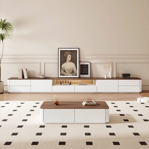 落地电视柜客厅家用小户型实木茶几胡桃色组合法式奶油风电视机柜