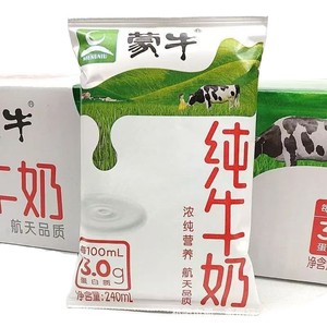 8月产蒙牛纯牛奶240ML*16袋枕硬纸袋包装整箱批发